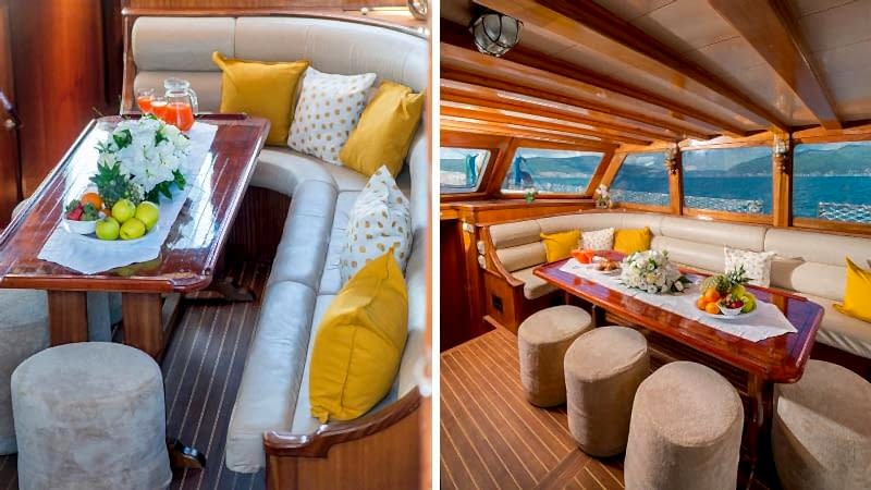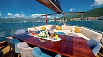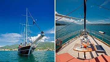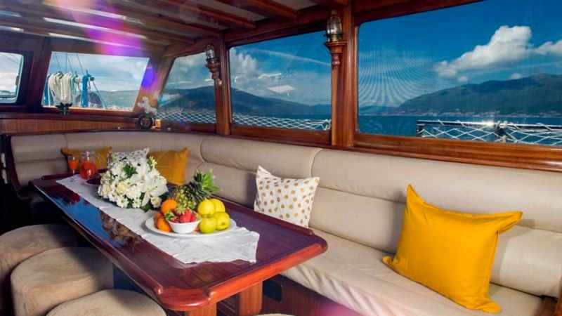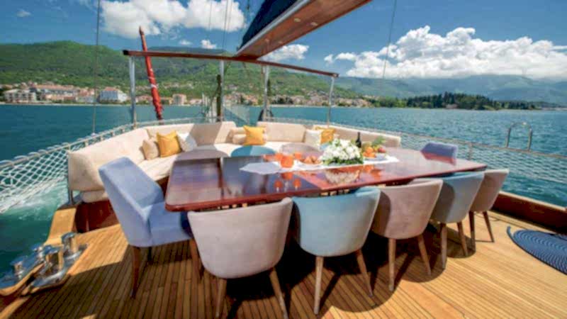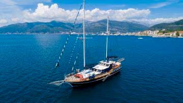 2006 sezonunda suya indirilen Adatepe 4 teknesi, ekonomik tekne kiralama tercih eden misafirlerimiz için kaliteli hizmet sunmaktadır. Teknemizde toplamda 6 adet çift kişilik kabin bulunmakta olup, bunlar 1 adet master kabin ve 5 adet double kabinden oluşmaktadır. Adatepe 4 guletinde toplam maksimum 12 kişiye kadar mavi yolculuk hizmeti alınabilmektedir. 25 metre uzunluğa sahip olan Adatepe 4 yatı, ön ve arka güvertelerinde geniş oturma minderlerine sahiptir. Uygun hava şartlarında yelken seyri de yapabilen teknemiz, tecrübeli personeli ile sizlerin güzel bir tatil geçirmesine olanak sunmaktadır. Teknemiz Göcek limanına bağlı olup, Göcek yat kiralama rotaları için uygun bir alternatiftir.