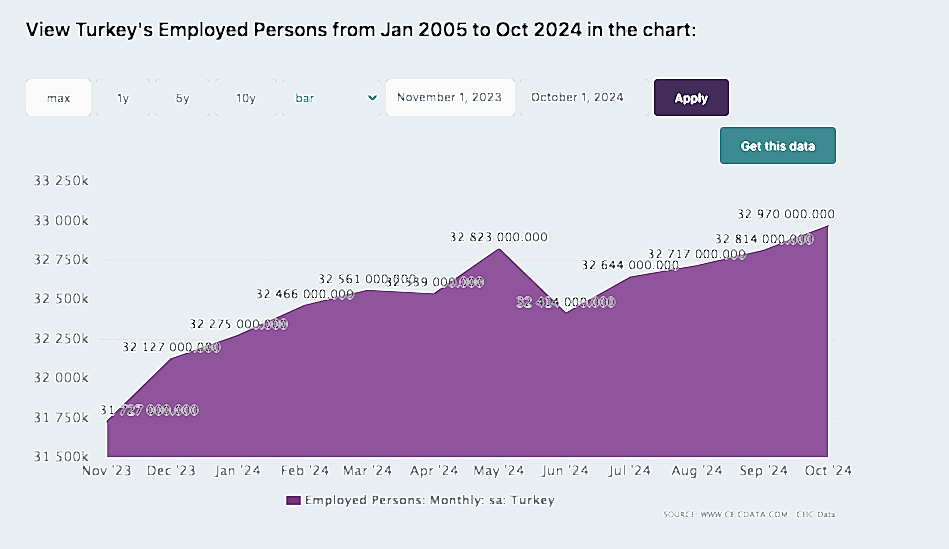 Ekim 2024'te Türkiye'deki çalışan kişi sayısı, bir önceki aya göre artış göstererek 32.970.000'e ulaştı ve bu, yat üretimi gibi sektörleri destekleyen güçlü bir işgücü piyasasına işaret ediyor.